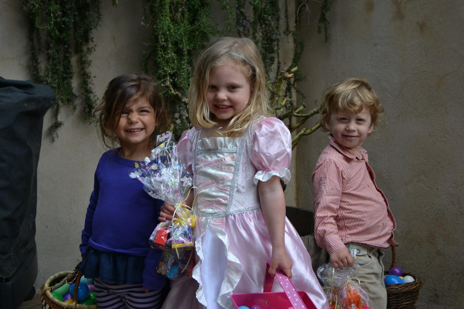 Serendipitously, Avery has a 4th cousin named Calla, who lives near us. She is the one on the far left. We went to her house today for brunch and an egg hunt. Here are the kids after the hunt with baskets full of eggs.