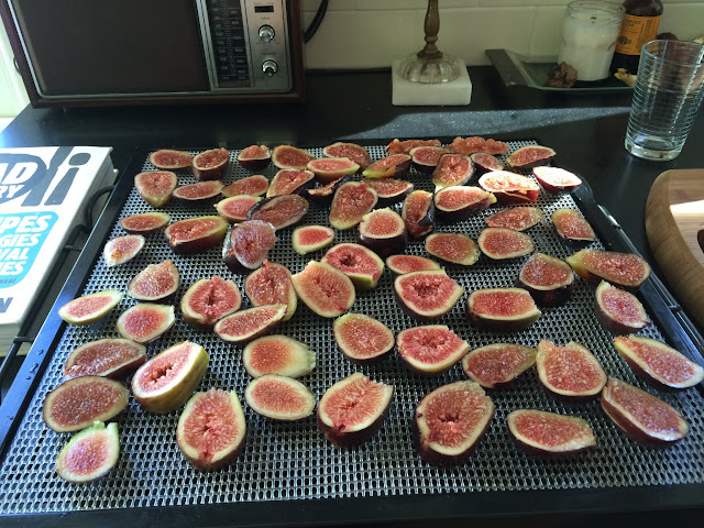 Figs! Our fig trees are only producing a dozen figs but our babysitter, Emma, got these from her aunt's house. We dehydrated them, some whole and some sliced.